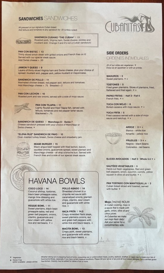 Roasted pork, Virginia ham, Swiss cheese, pickles and mustard aioli. Change it and it's not a Cuban sandwich!