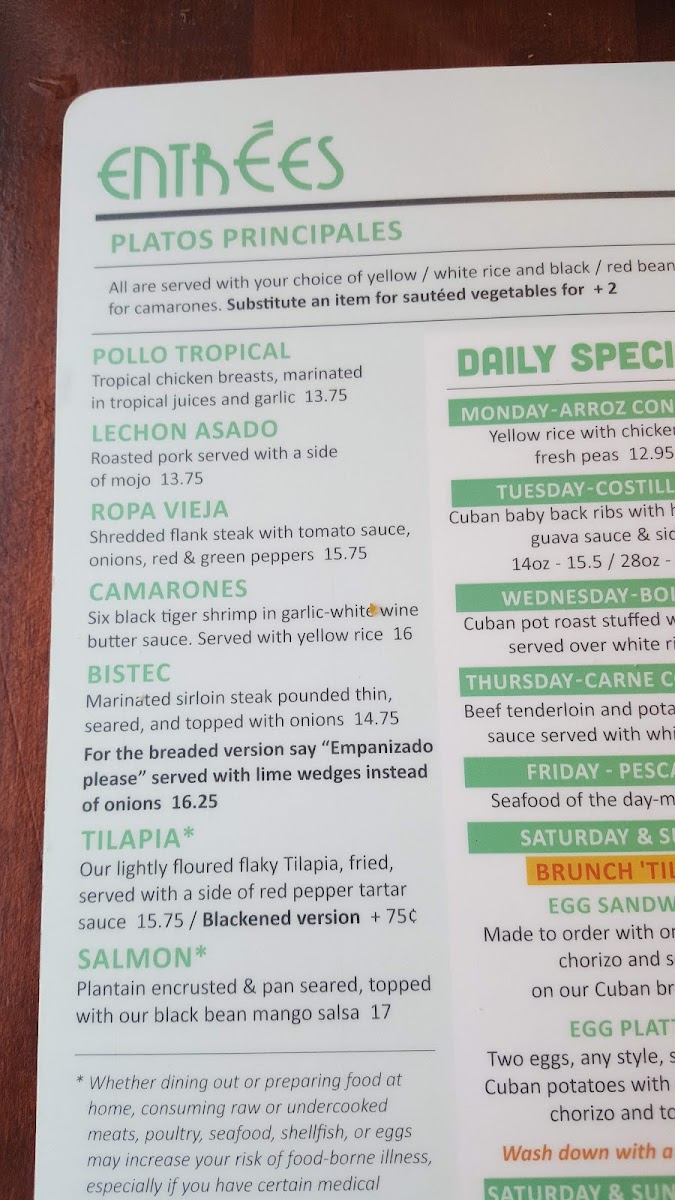 A Cuban classic. Seasoned yellow rice, chicken, fresh peas and red pepper